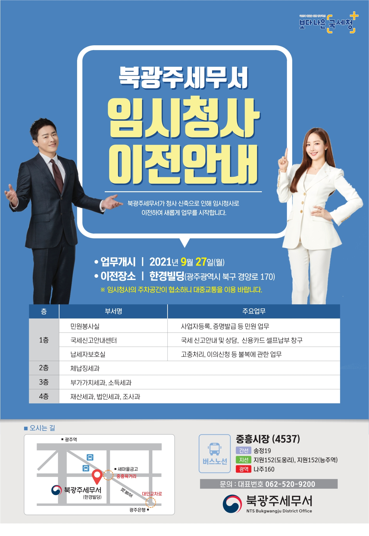북광주세무서 임시 청사 이전 안내
