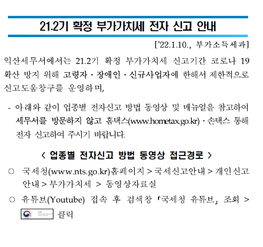 2021년 귀속 연말정산 비대면 교육 및 책자 배부 안내