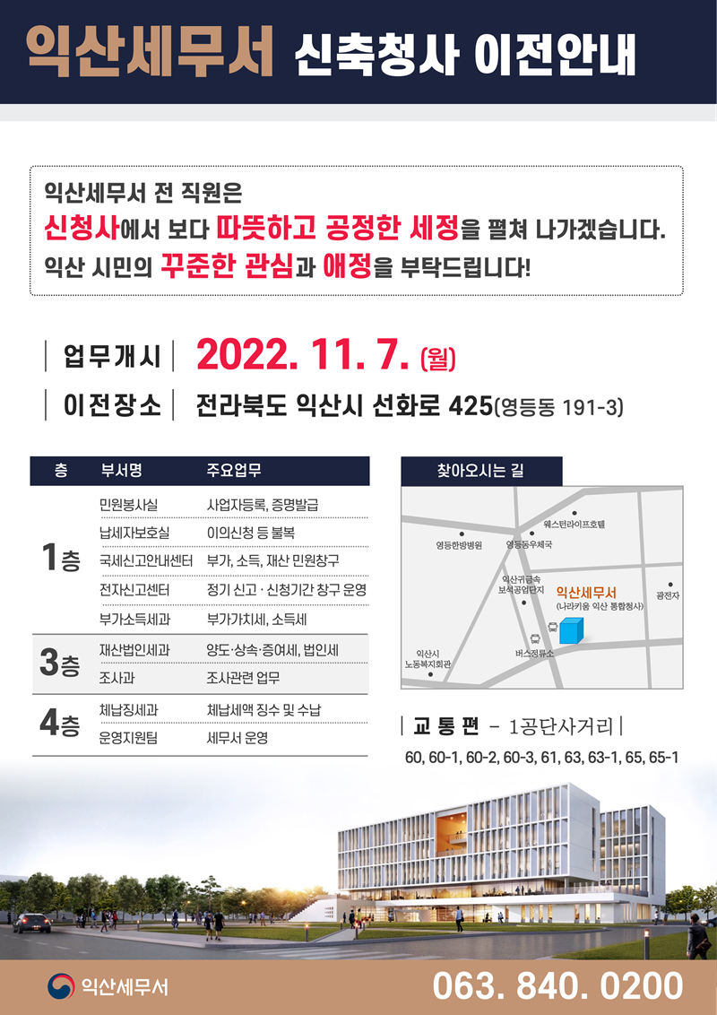 익산세무서 신축청사 이전 안내