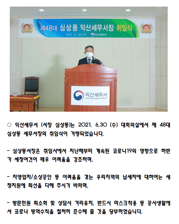 제 48대 심상동 익산세무서장 취임식
