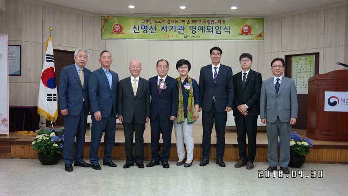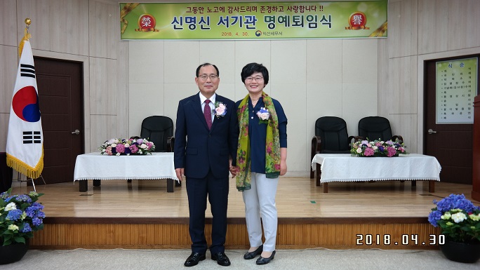 익산세무서는 2018.04.30.(월) 10:30부터 신명신 납세자보호담당관의 명예퇴임식을 갖고 새롭게 인생의 여정을 시작하는 과장님의 앞날에 무궁한 발전과 영광이 있기를 기원하면서 다채로운 명예퇴임 행사를 실시하였다.