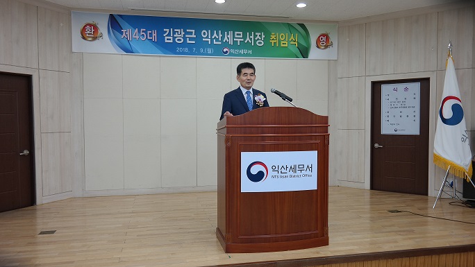익산세무서(서장 김광근)는 2018년 7월 9일 대회의실에서 제45대 김광근 세무서장의 취임식을 개최하였다.