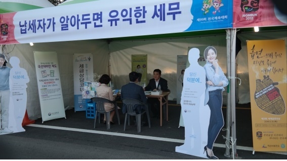 익산세무서(서장 김광근)는 제99회 전국체육대회 기간인 10.12.~18. 개막식이 열린 익산종합운동장에 홍보부스를 설치하고 세정 홍보활동과 현장의견 청취 등 소통 강화를 통한 맞춤형 세정 지원 활동을 펼치고 있다.